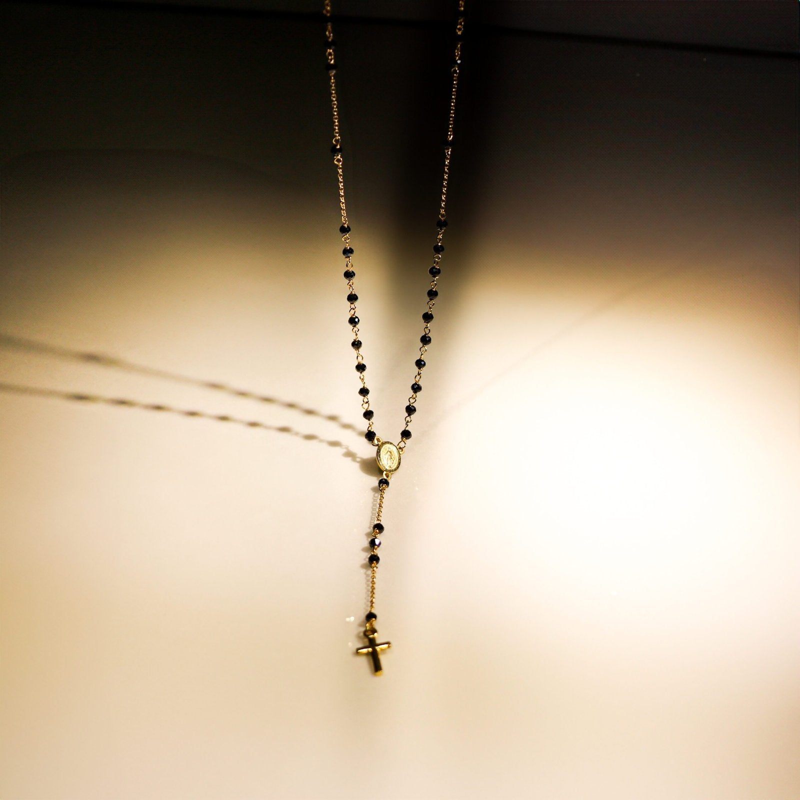 Orné de perles en onyx noires et légèrement de bleu irisées, ce chapelet d’une extrême élégance se porte aussi bien au quotidien que pour habiller vos plus belles tenues de soirées.