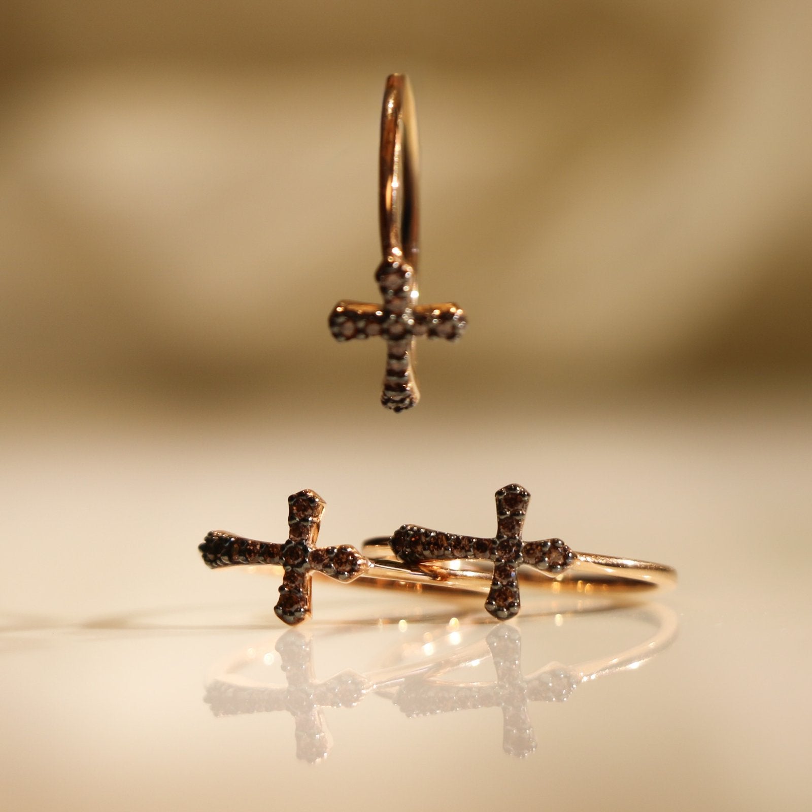 Mystical and refined, the Baroque ring will seduce you with its discreet sophistication. Its central cross adorned with brown zirconium gives it a deliciously baroque style, reminiscent of period creations.