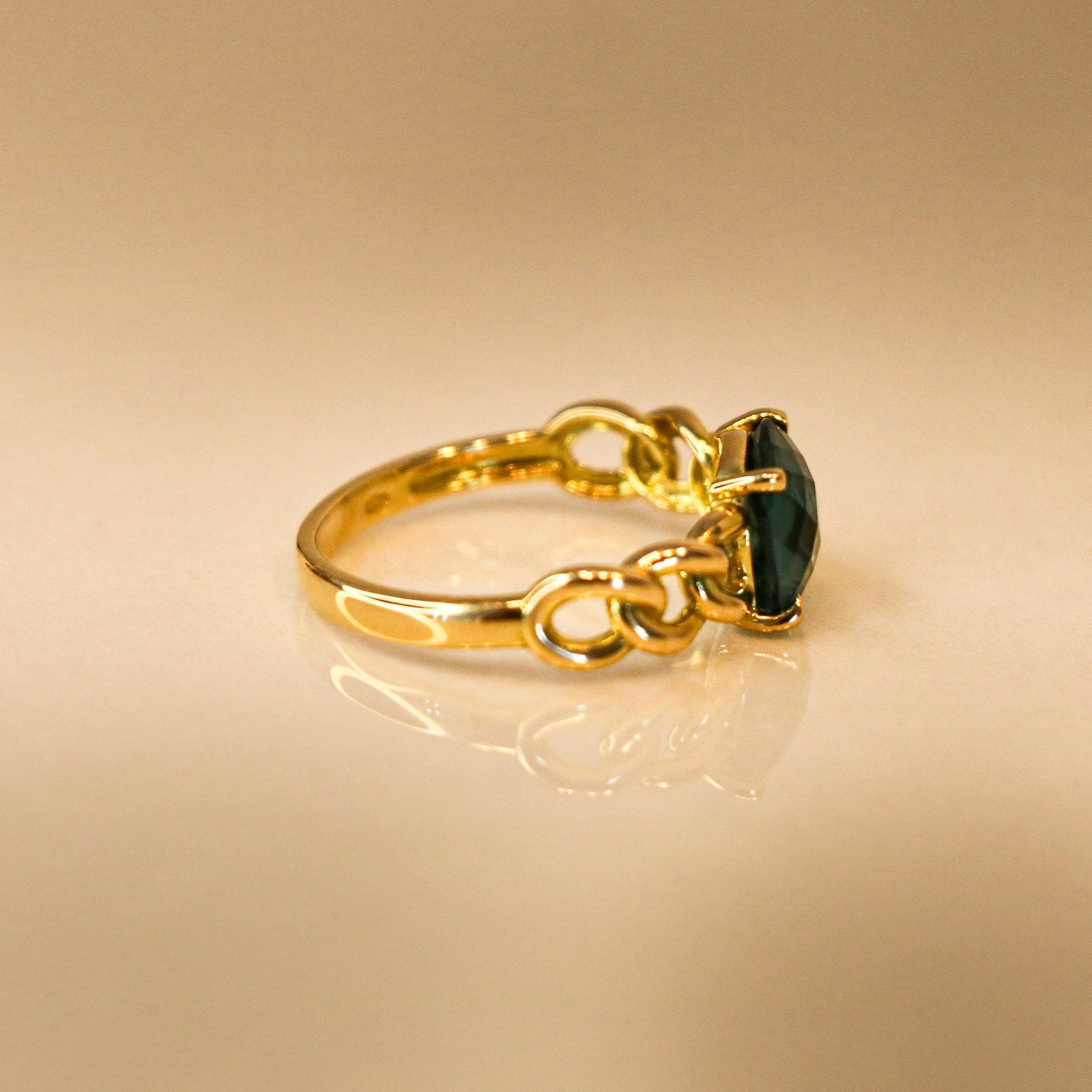 A piece of character, this ring features a chain-design setting adorned with a royal blue tourmaline, a stone of balance and depth. An ideal piece of jewellery to wear every day, or to dress up your evening outfits.