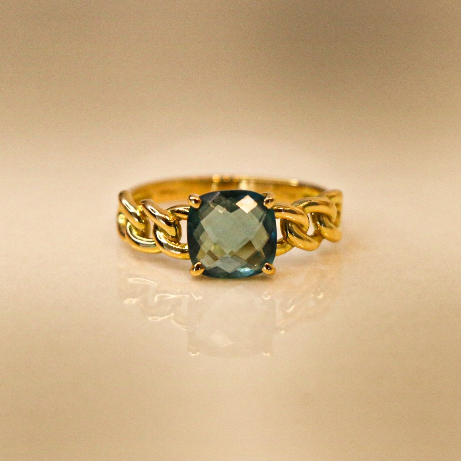 CLEO ROYAL BLUE CHAIN RING YELLOW GOLD